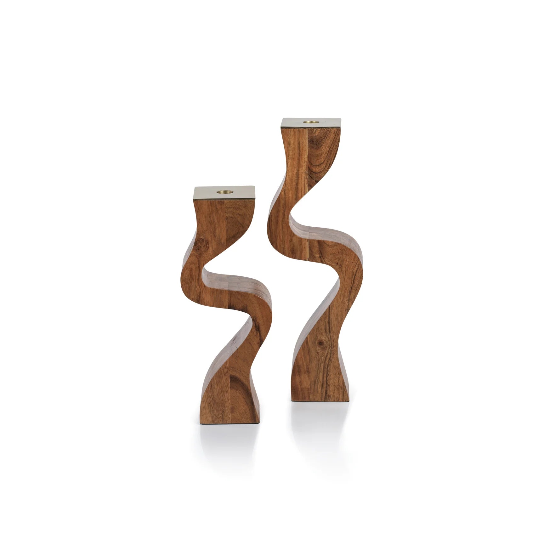 Wave Crest Acacia Wood Taper Holder with Metal Trim - Short