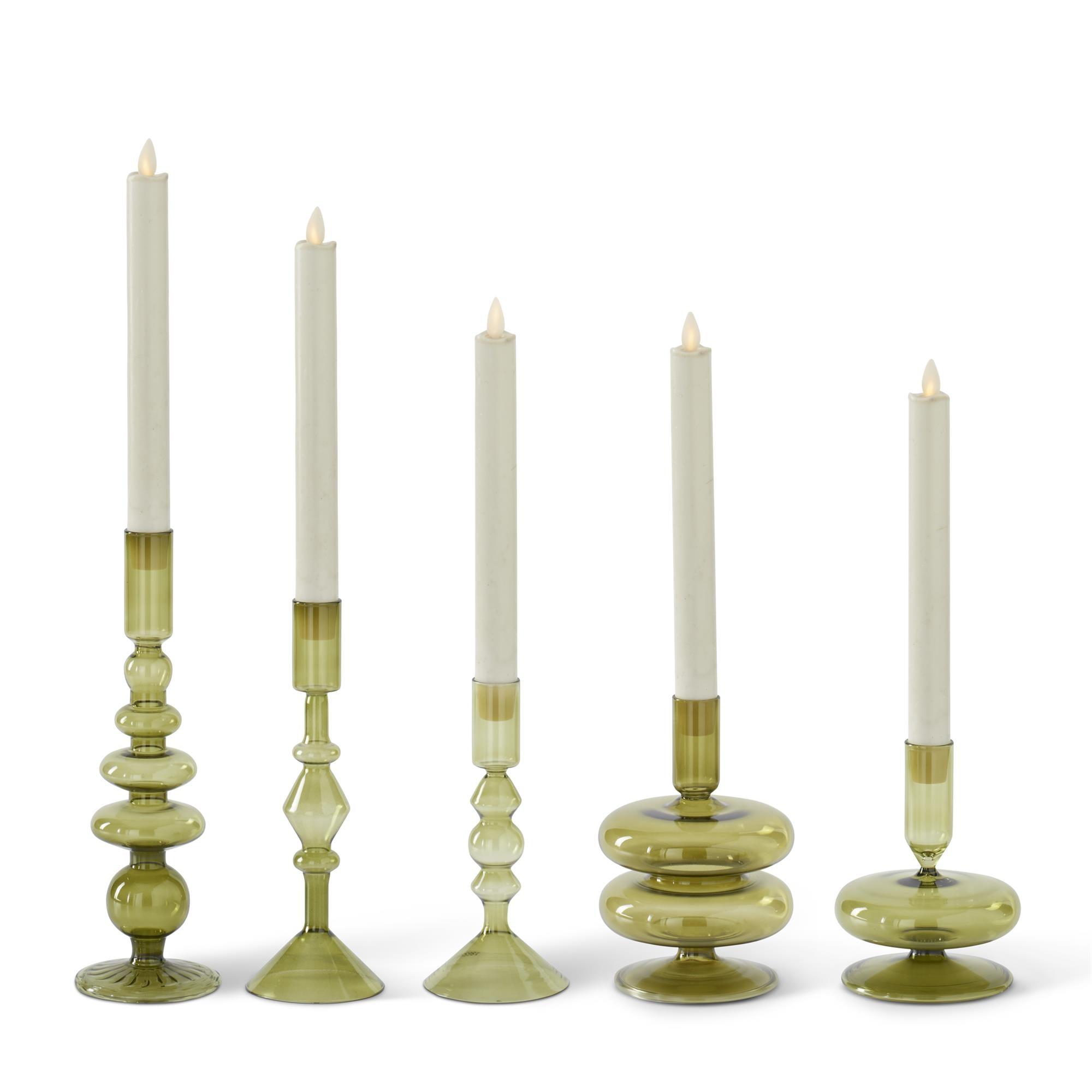 Set of 5 Handmade Green Glass Modern Taper Candleholders