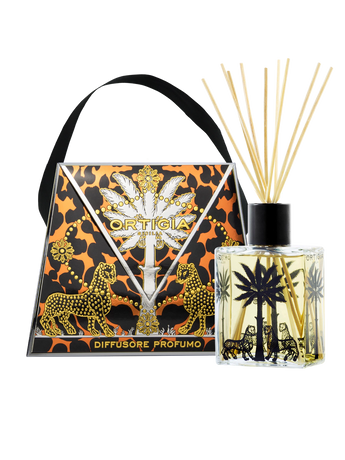 Natural reeds in a lovely signature bottle. The perfumed liquid travels through the sticks, releasing the subtle and continuous fragrance of musky amber and spice.