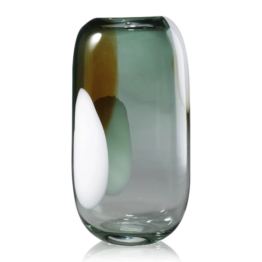 • Unique hand-blown glass vase featuring a beautiful blend of green, white, and brown hues