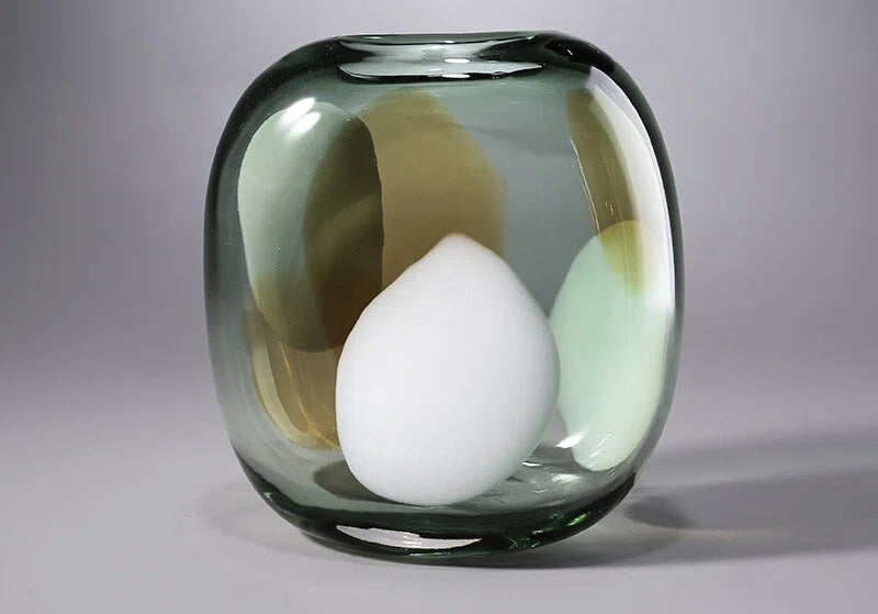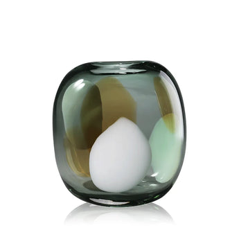 • Unique hand-blown glass vase featuring a beautiful blend of green, white, and brown hues