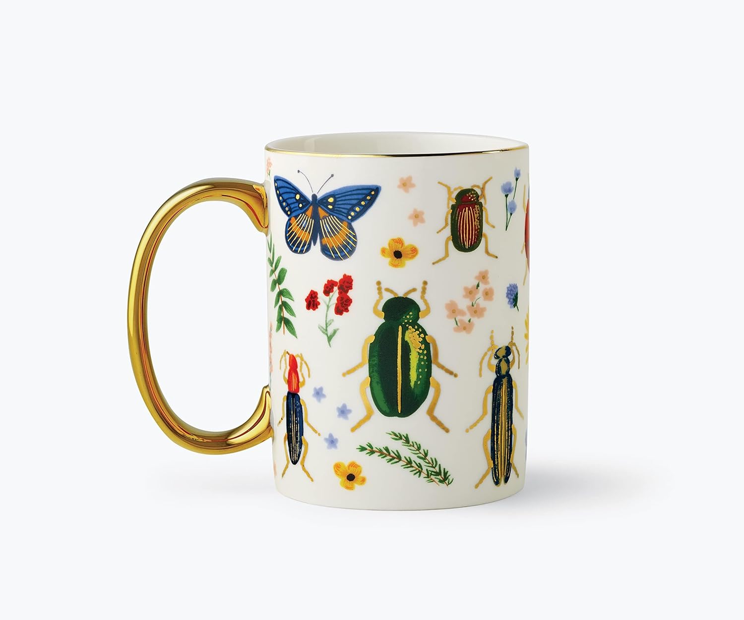 With intricate designs, bright colors,and gold accents, our Curio mug celebrates the beauty found in nature. Our porcelain mugs feature illustrated designs and a gilded rim and handle to add a little something special to your favorite beverage.