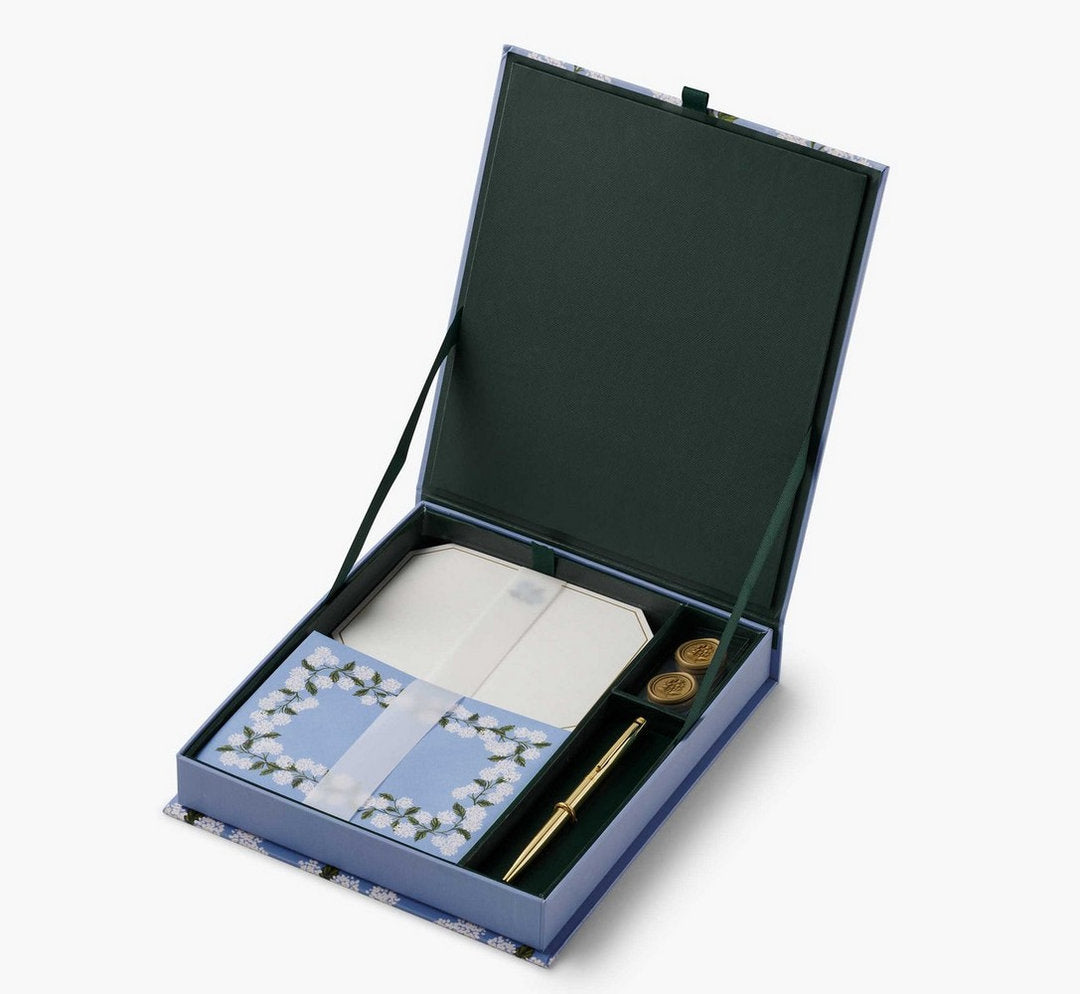 Practice the art of letter writing with our letter writing sets. Each beautifully boxed set includes 20 card stock sheets with illustrated designs, 20 coordinating envelopes, 20 gold envelope seals, and a pen.