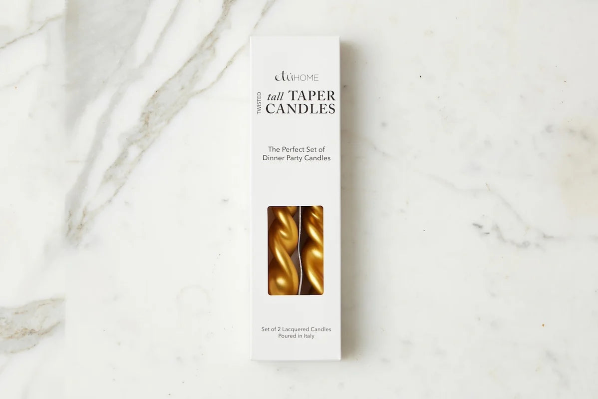 Elevate everyday moments with our Gold Signature Twisted Taper Candles — a timeless symbol of elegance and ambiance. Tall, sculptural, and lacquered to a refined sheen, these candles are as beautiful unlit as they are glowing.