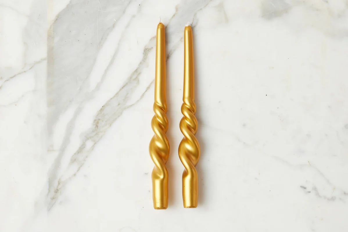Lacquer Tall Twisted Taper Candles, Gold, Set of 2