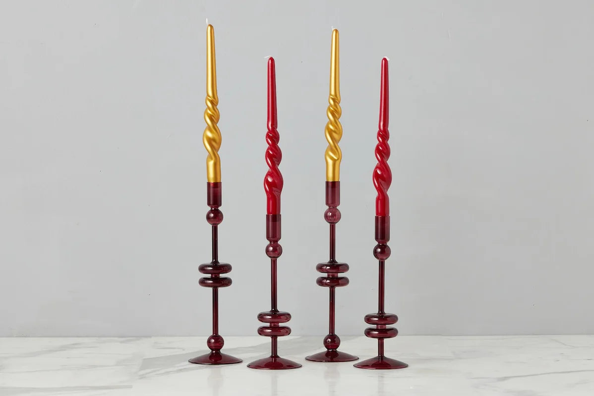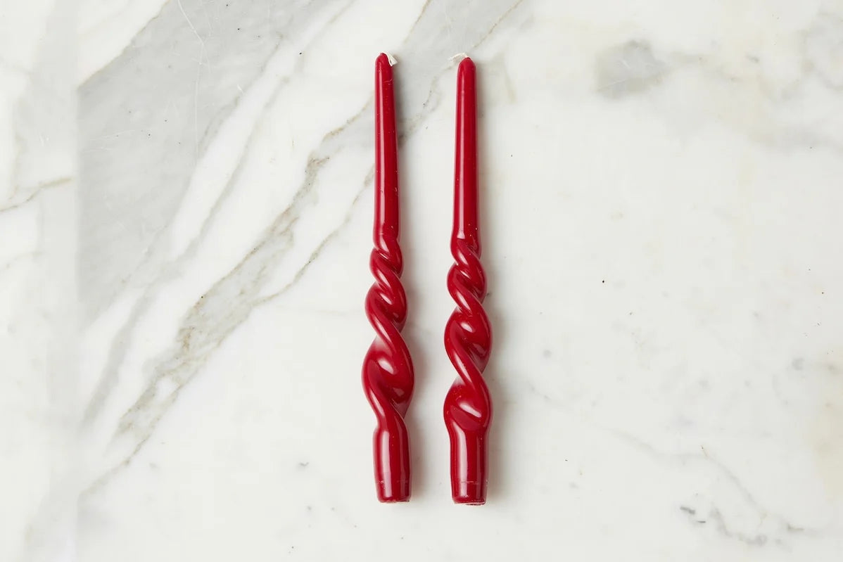 Lacquered Tall Twisted Taper Candles, Merlot, Set of 2