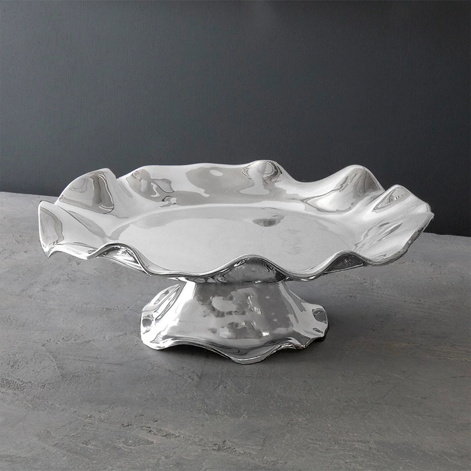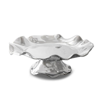 All rise ... The PEDESTAL Vento Olanes Cake Plate elevates anything served on it. A fusion of fashion and function, this platter's sleek silver surface and flirty curves are a delight to the senses. A brilliant expression of the "good life" in a beautiful handmade piece to be enjoyed every day. Made of a top quality, FDA safe, easy-care, oven and freezer friendly aluminum alloy. Tarnish free.